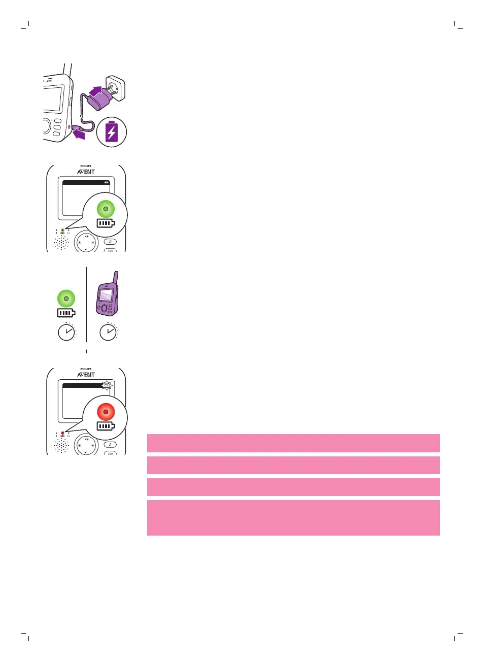 Se la batteria ricaricabile dell'unità genitore è quasi scarica, la spia di