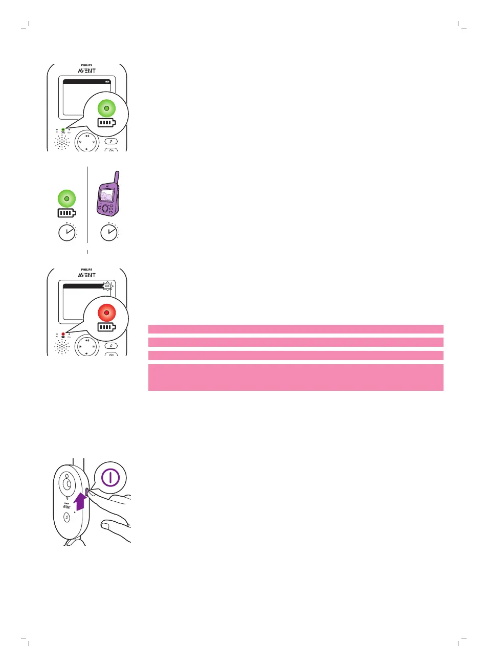 Når det oppladbare batteriet i foreldreenheten er nesten tomt, lyser