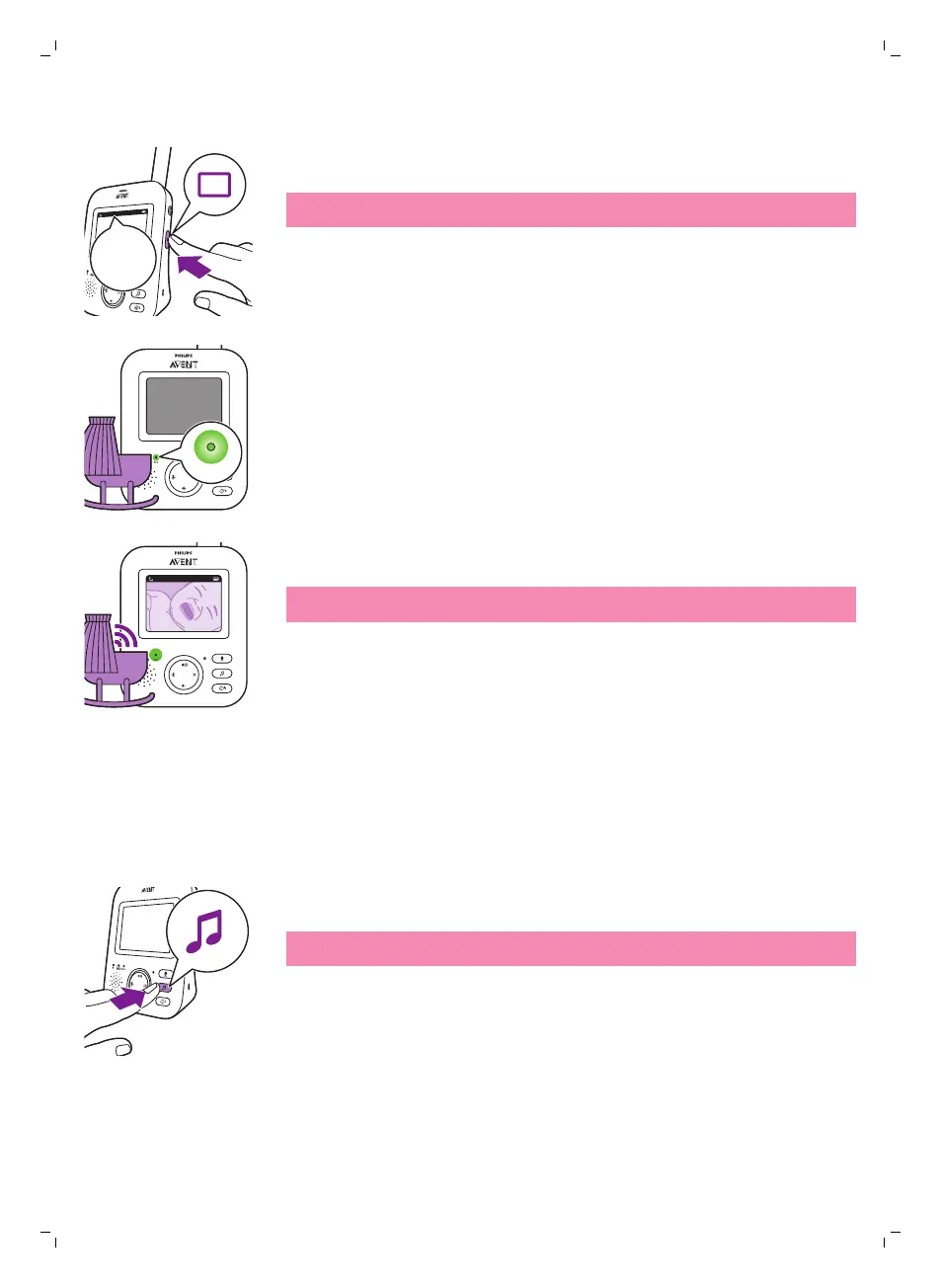 Kun ECO-tila on käytössä, vanhemman yksikön näyttö ja äänet poistetaan