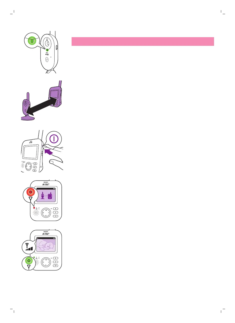4 Slå på föräldraenheten genom att trycka på dess på/av-knapp.