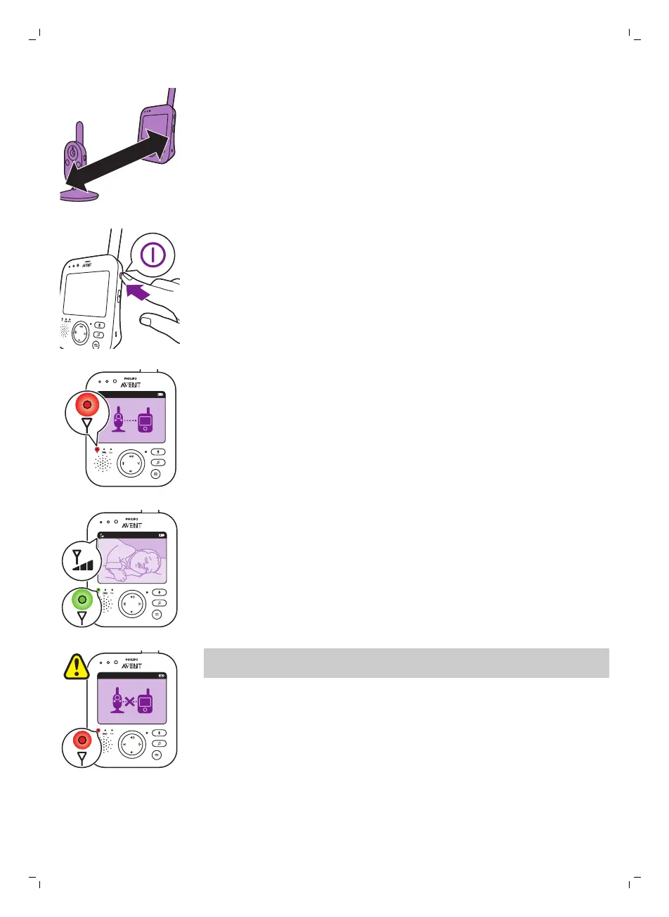 zobrazovat ikona mimo dosah. Zkontrolujte, zda je dětská jednotka