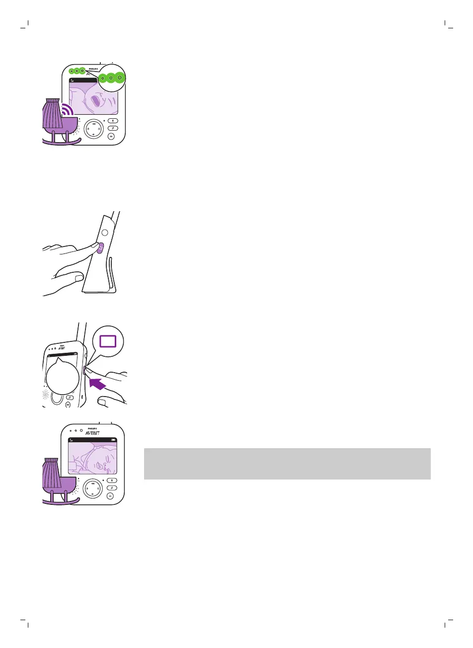 Když dětská jednotka zaznamená nějaký zvuk, na rodičovské jednotce se