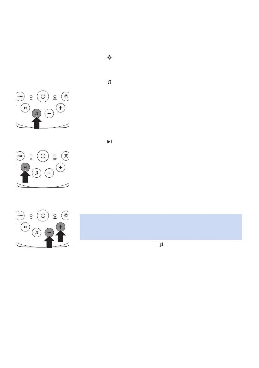 3 To adjust the sound level of the lullaby, press the volume + or the