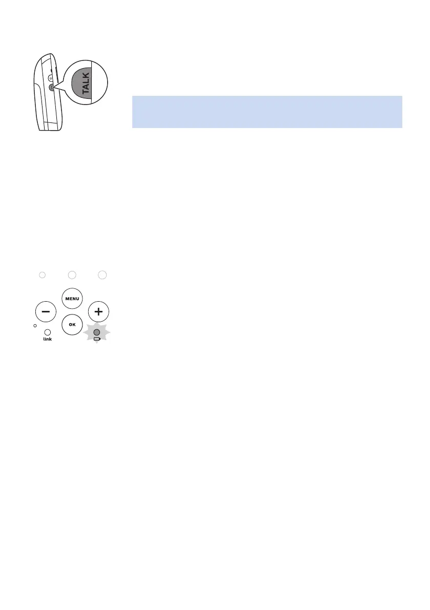 The ‚link‘ light starts ashing green and ‚TALK‘ appears on the display.