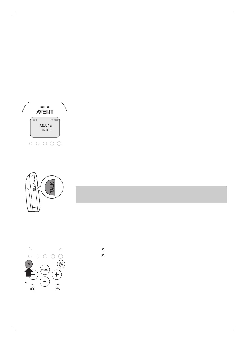1 If you want to comfort your baby, press TALK on the parent unit and talk