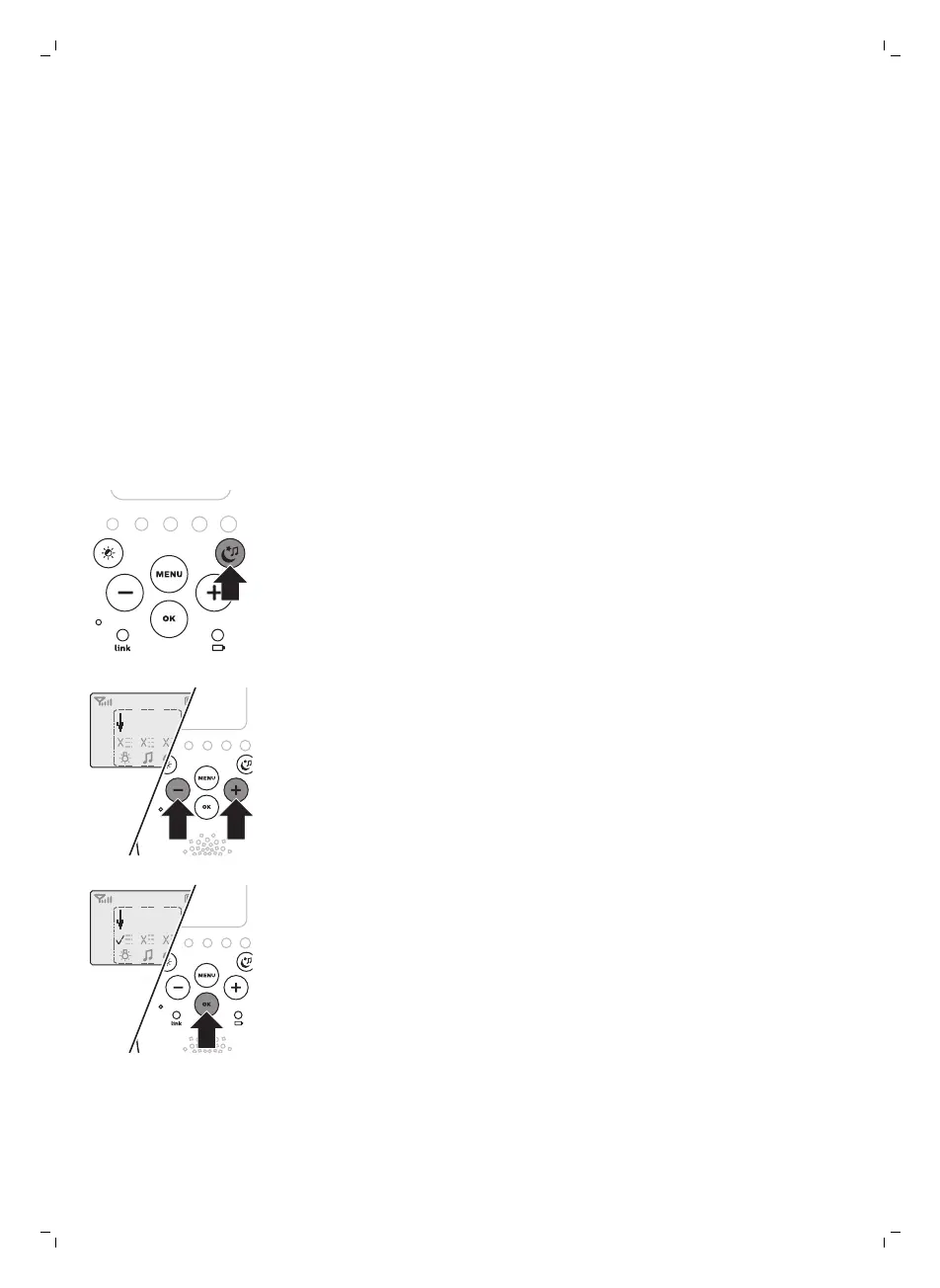 2 Verwenden Sie die Tasten "–" und "+", um den Pfeil auf eine