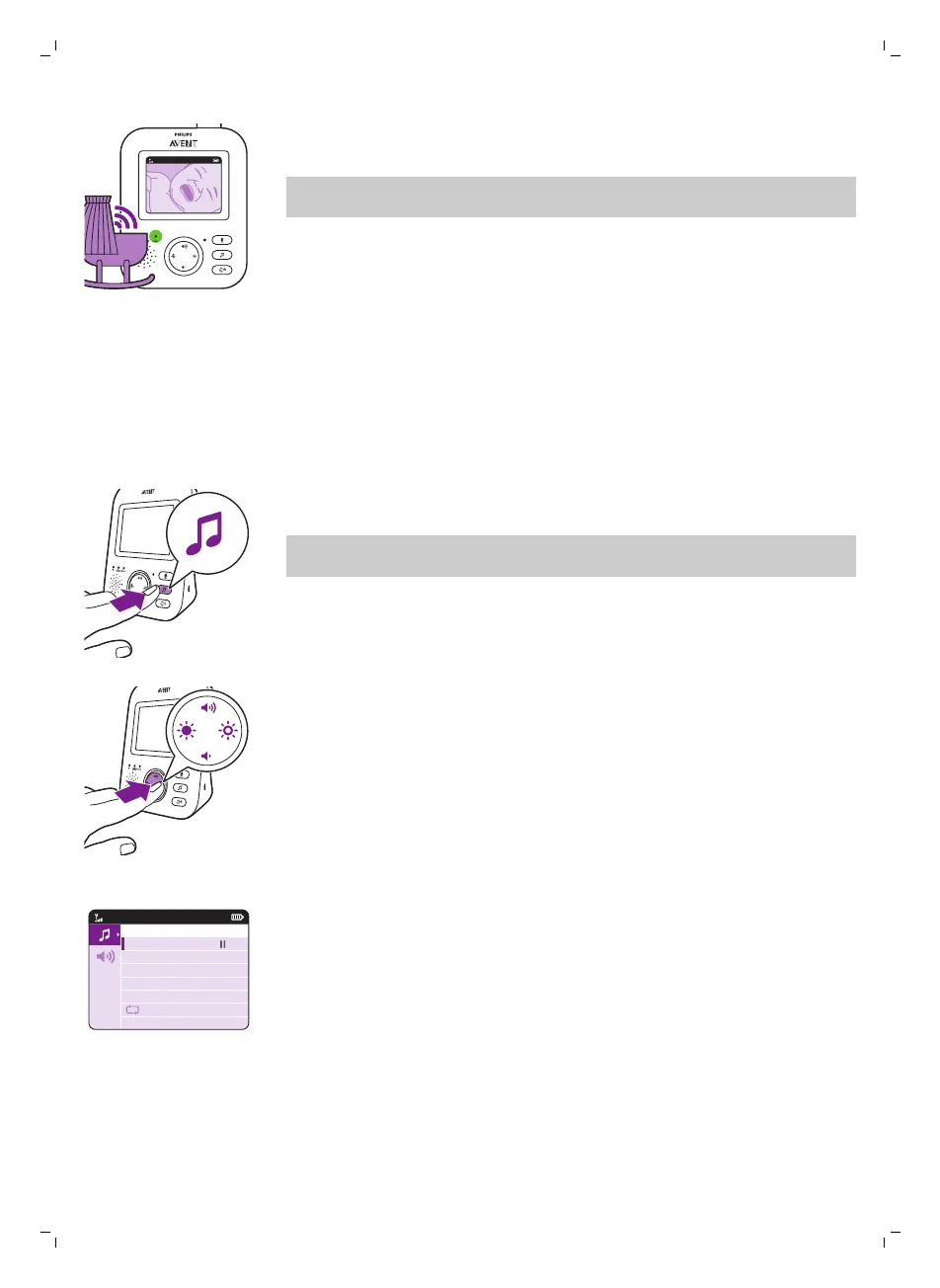 Az altatódal funkciót a bébiegységen és a szülői egységen is be lehet