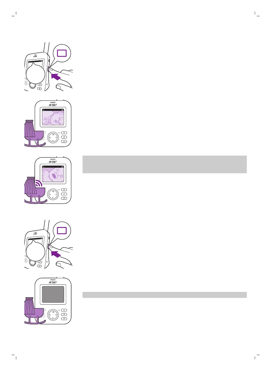 Kui režiim VIDEO on aktiveeritud, jääb ekraan alati sisse nii, et oma beebit