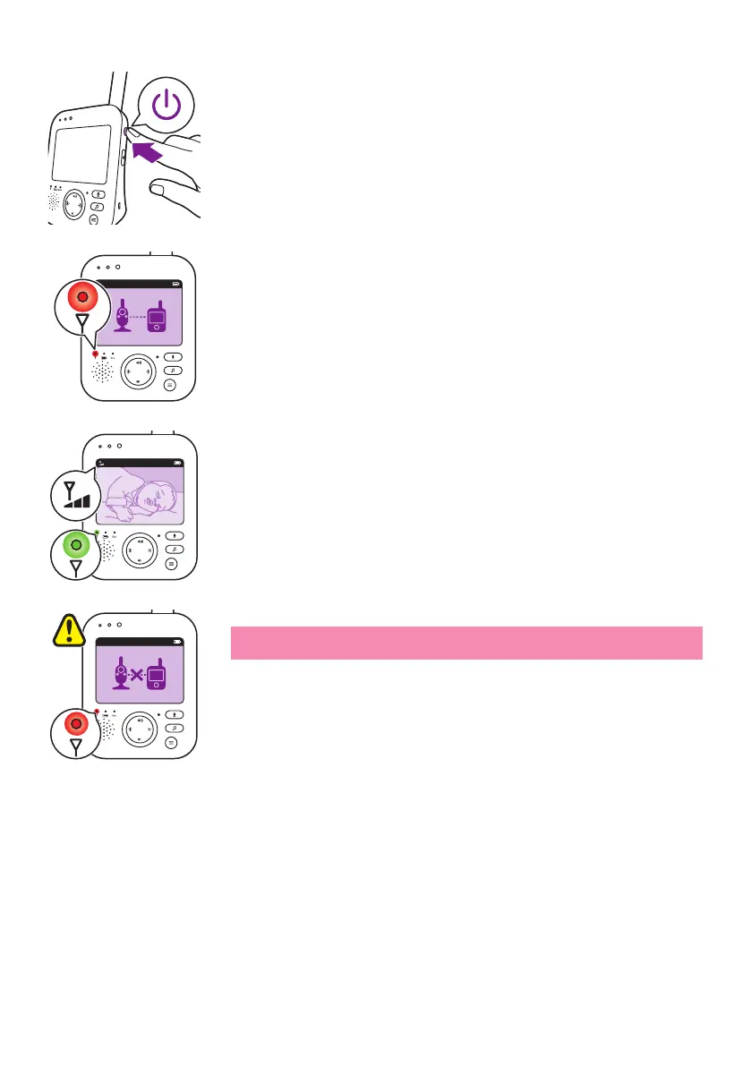 the link light lights up red� The parent unit starts to search for the