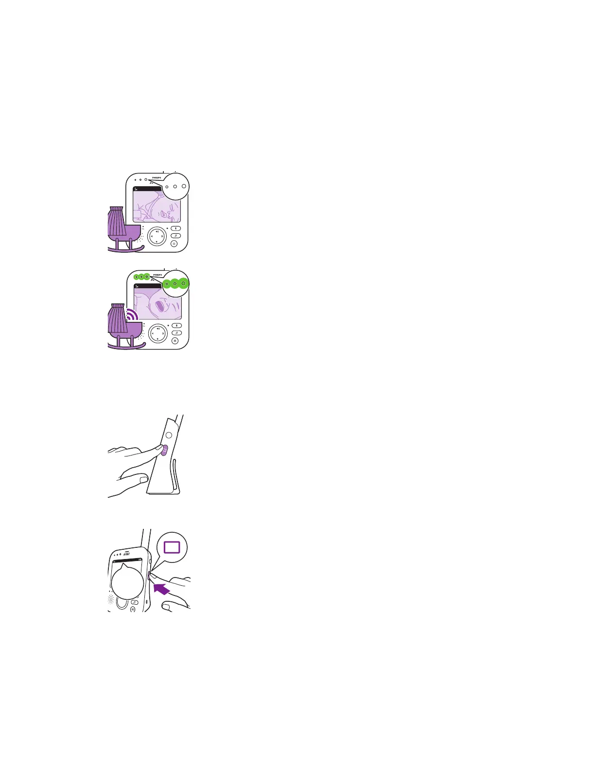 Con el monitor del bebé encendido, puede elegir entre 4 modos diferentes