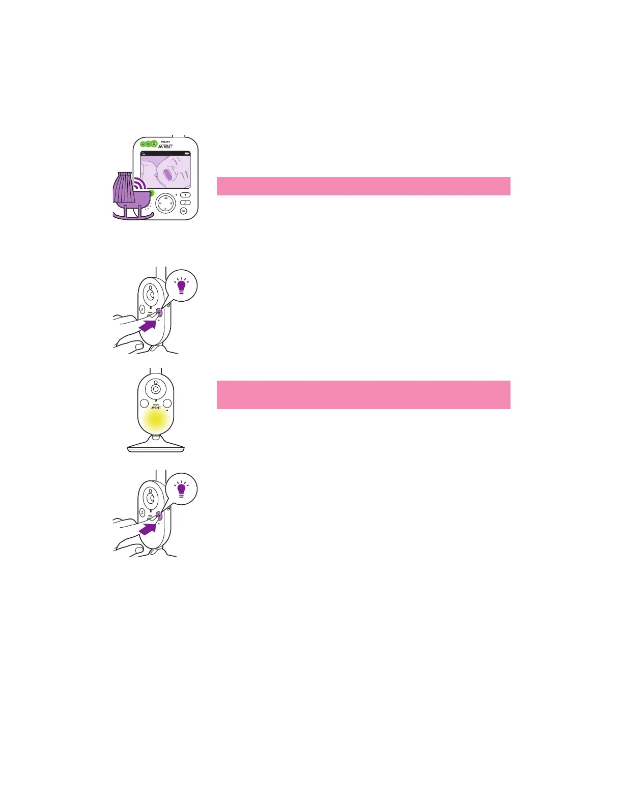 1 Appuyez sur le bouton marche/arrêt de la veilleuse de l’unité bébé pour