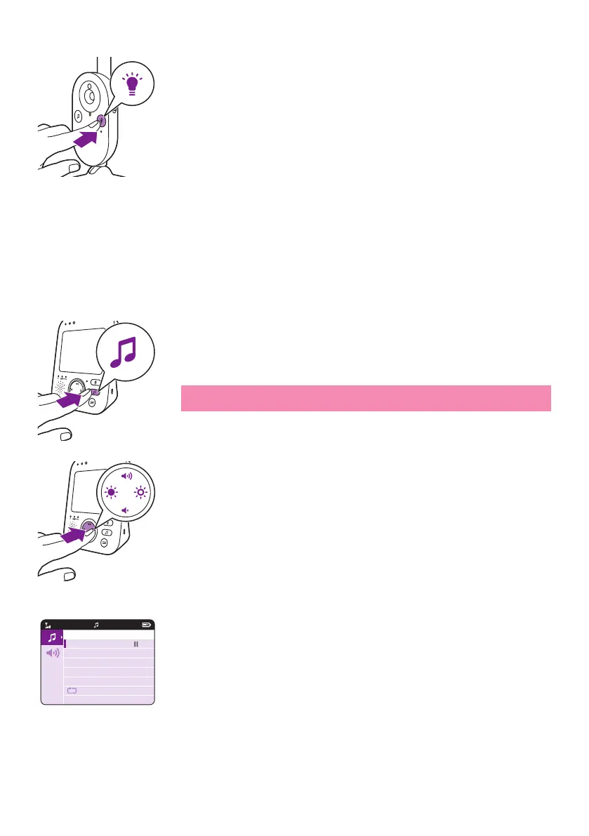 1 Press the lullaby button on the parent unit to open the menu for