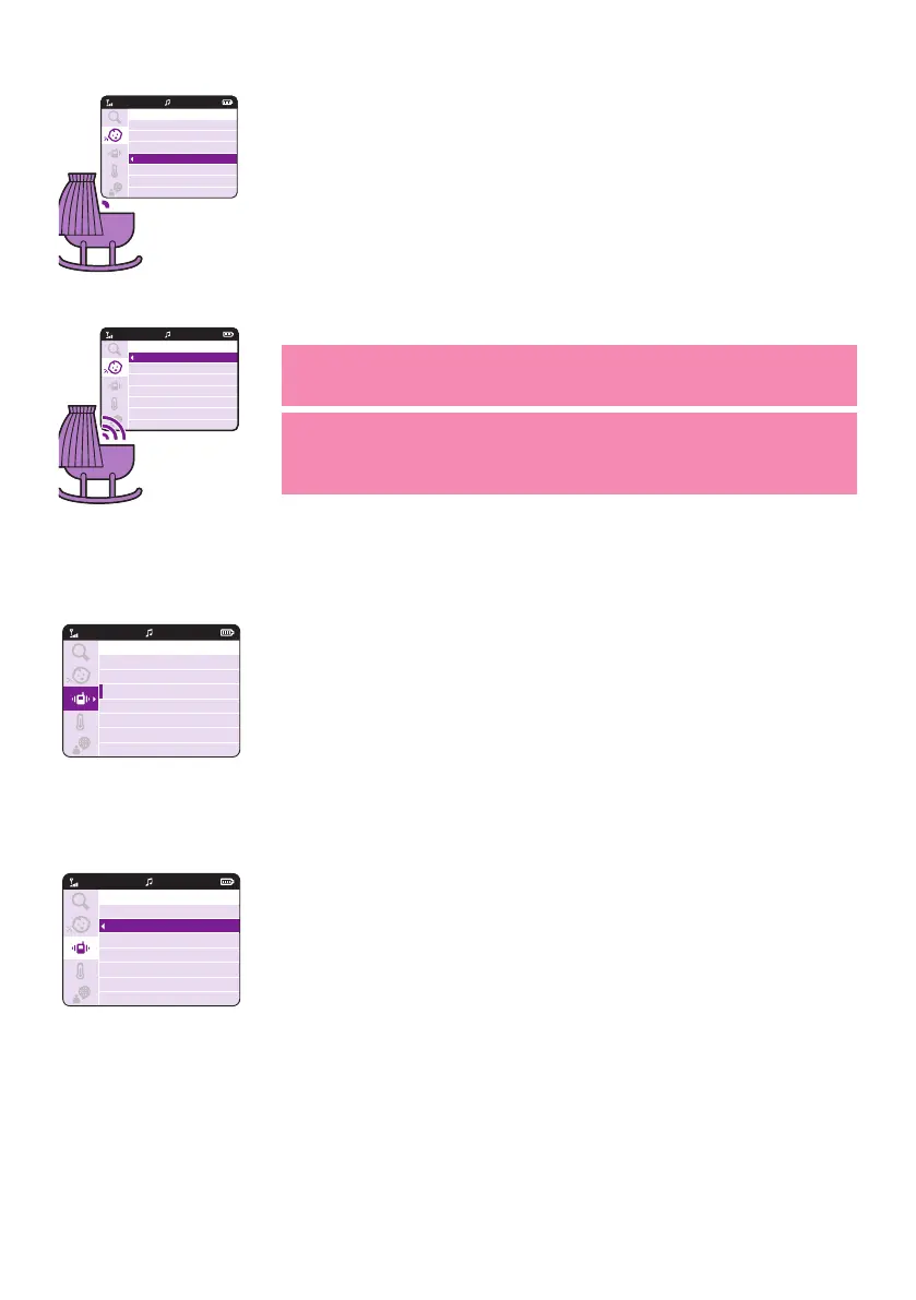 When vibration is on, the parent unit will vibrate when your baby cries