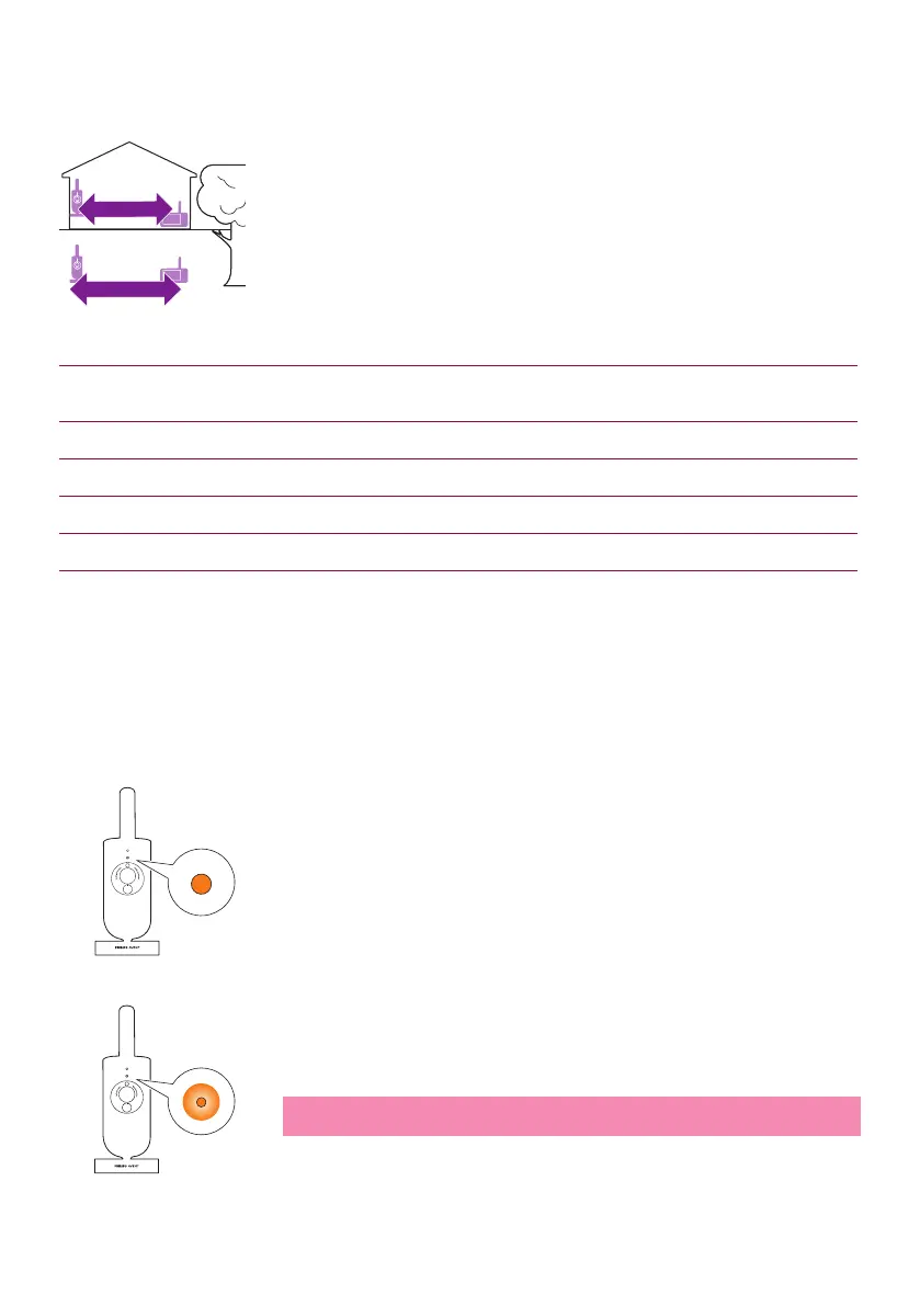 2 Flashes orange: the baby unit is upgrading its rmware. Do not switch