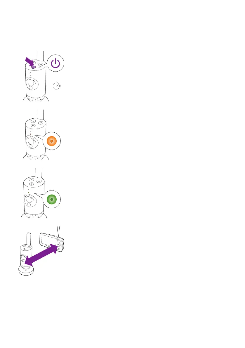 2 When the baby unit is on, the indicator light turns orange for booting-