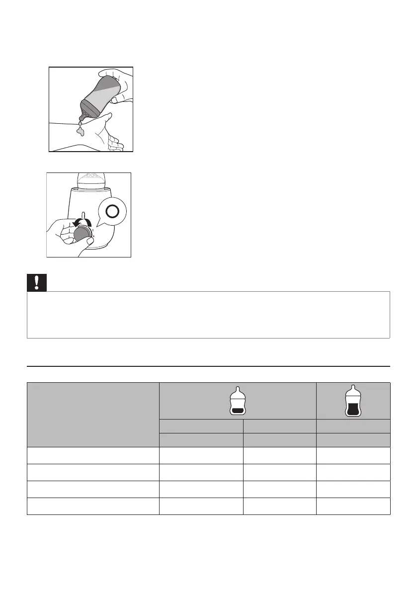 • The water in the bottle warmer might be hot after nishing warming milk / baby food. Be careful