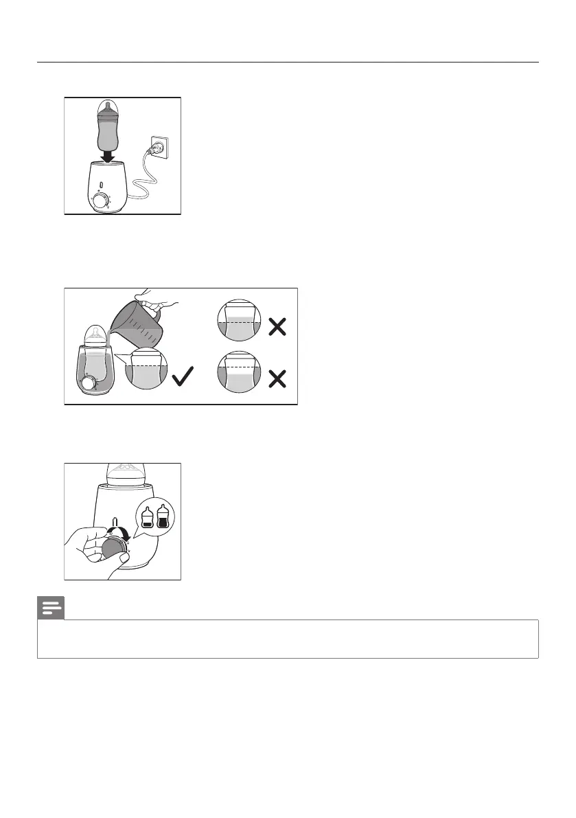 Fill the bottle warmer with drinking water up to the level of the milk in