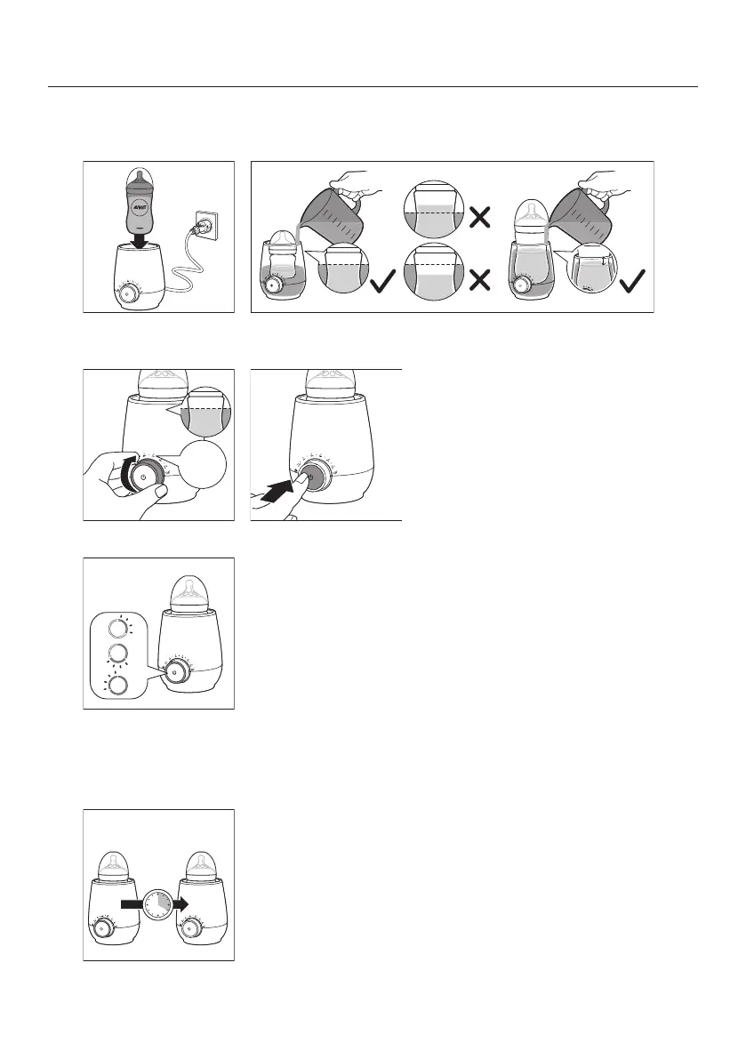 Place the bottle in the bottle warmer� Fill with drinking water to the level of