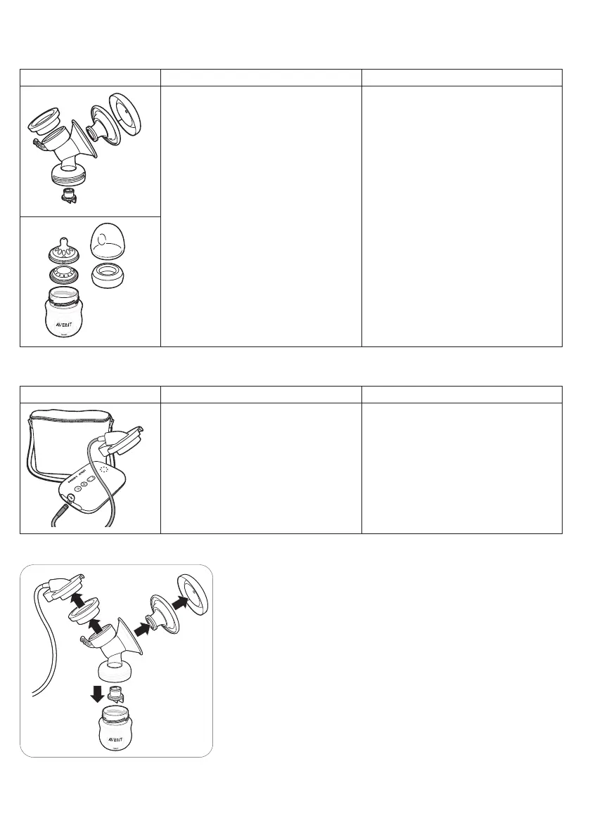 Clean and disinfect the parts that come into contact with the breast and breast milk as described below: