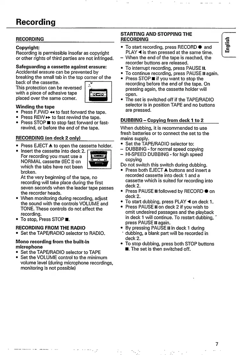 Philips AW 7150 - Recording from the Radio; Starting and Stopping the Recording