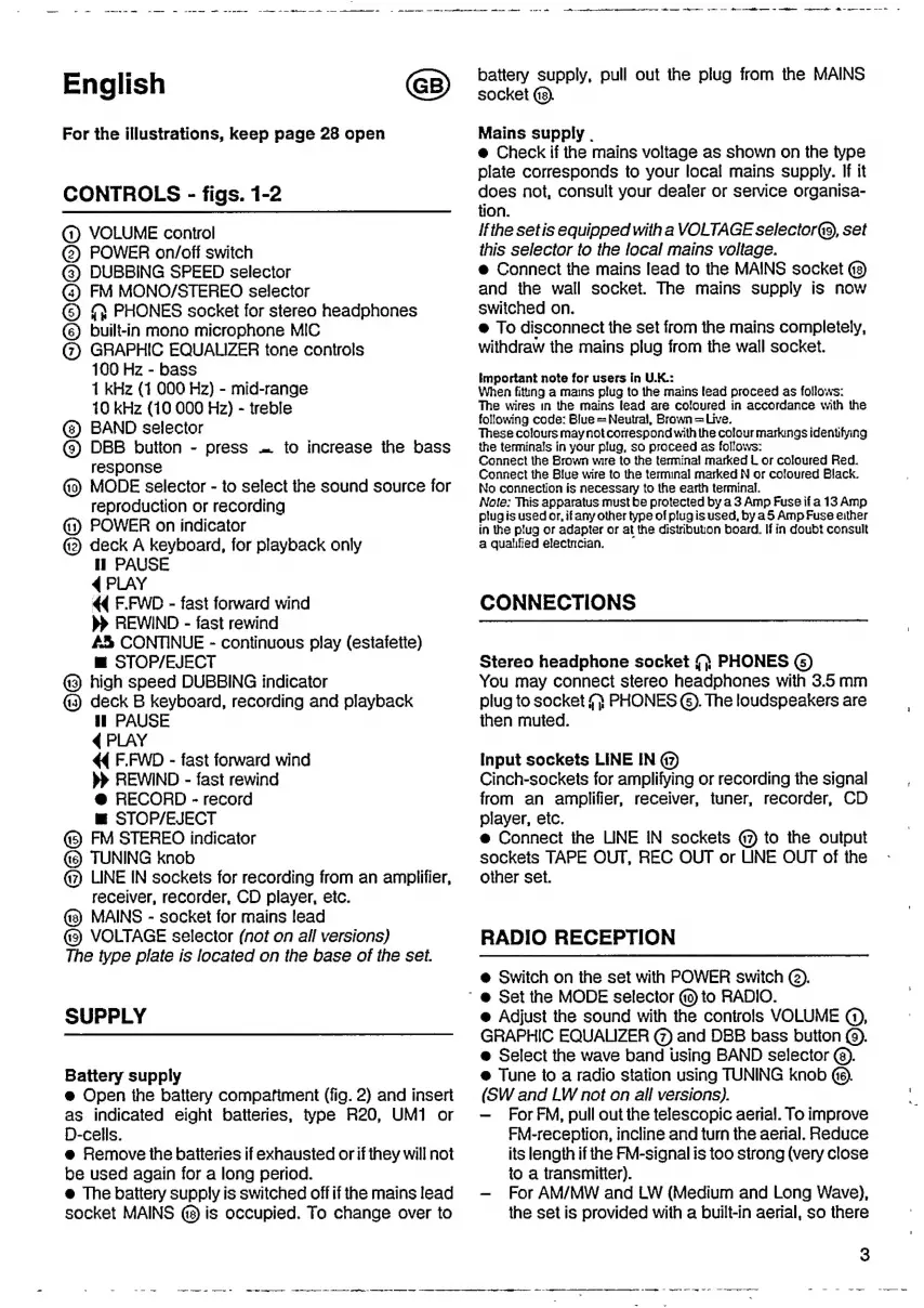 Philips AW 7590 - CONTROLS AND OPERATION; Main Controls and Settings; Input, Output, and Indicators; Cassette Deck Functions
