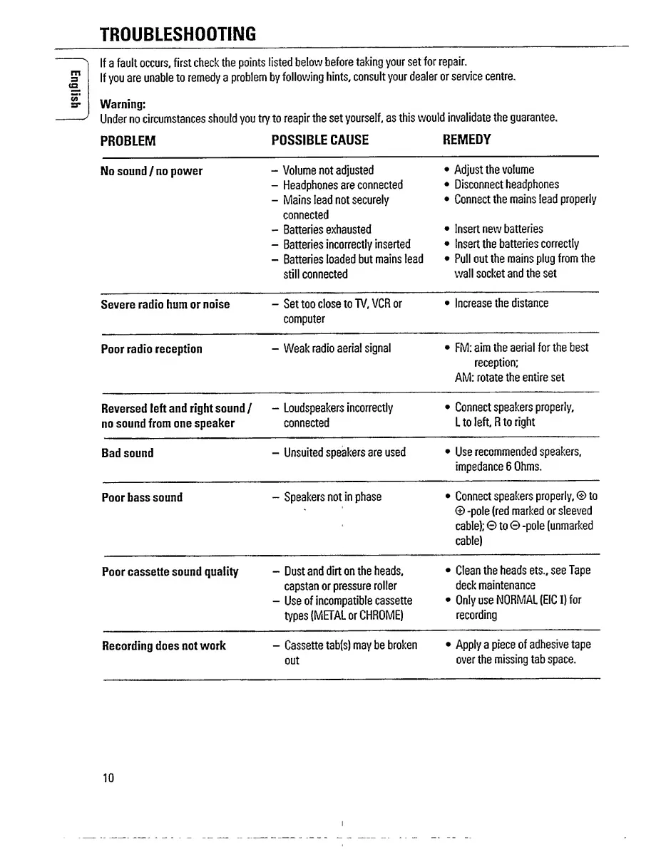 Philips AW 7760 - Troubleshooting