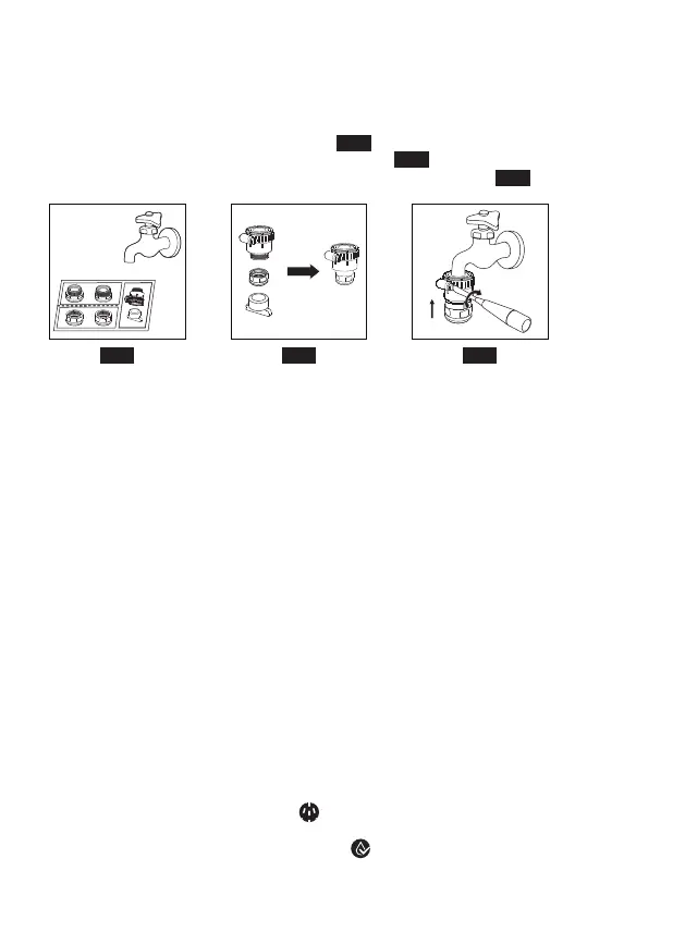 (3) Отрегулируйте и прикрутите комбинированный адаптер к крану.