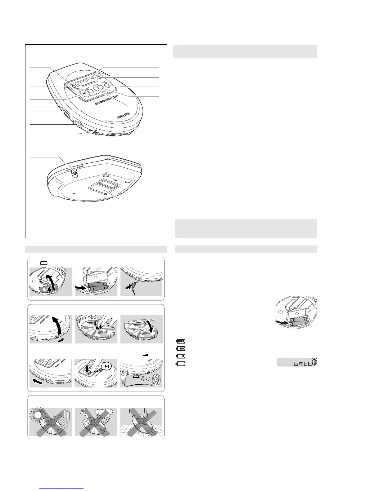 • alkaline batteries type LR6, UM3 or AA (preferably Philips).