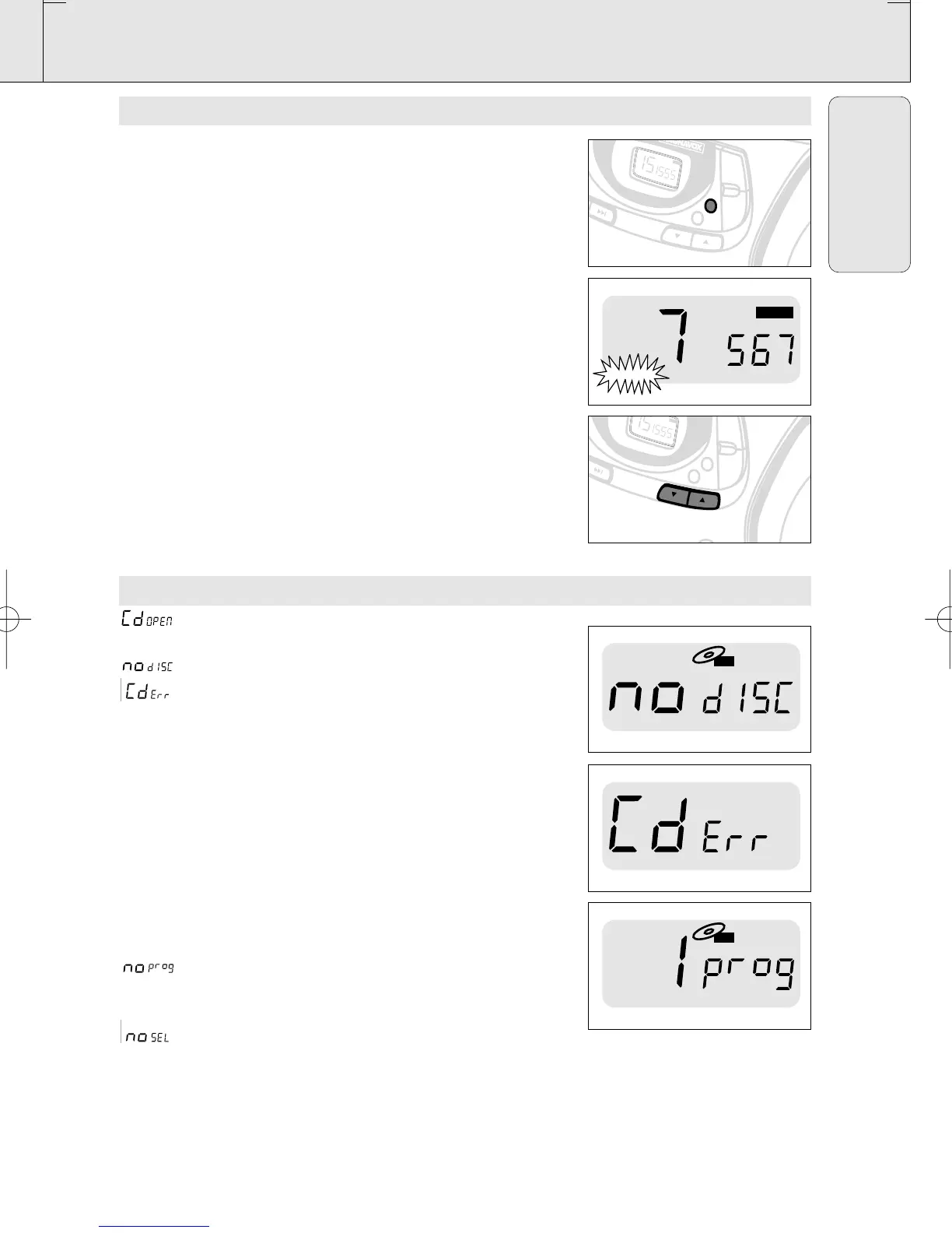 PROG: appears briefly and the selected track number (1-20) when