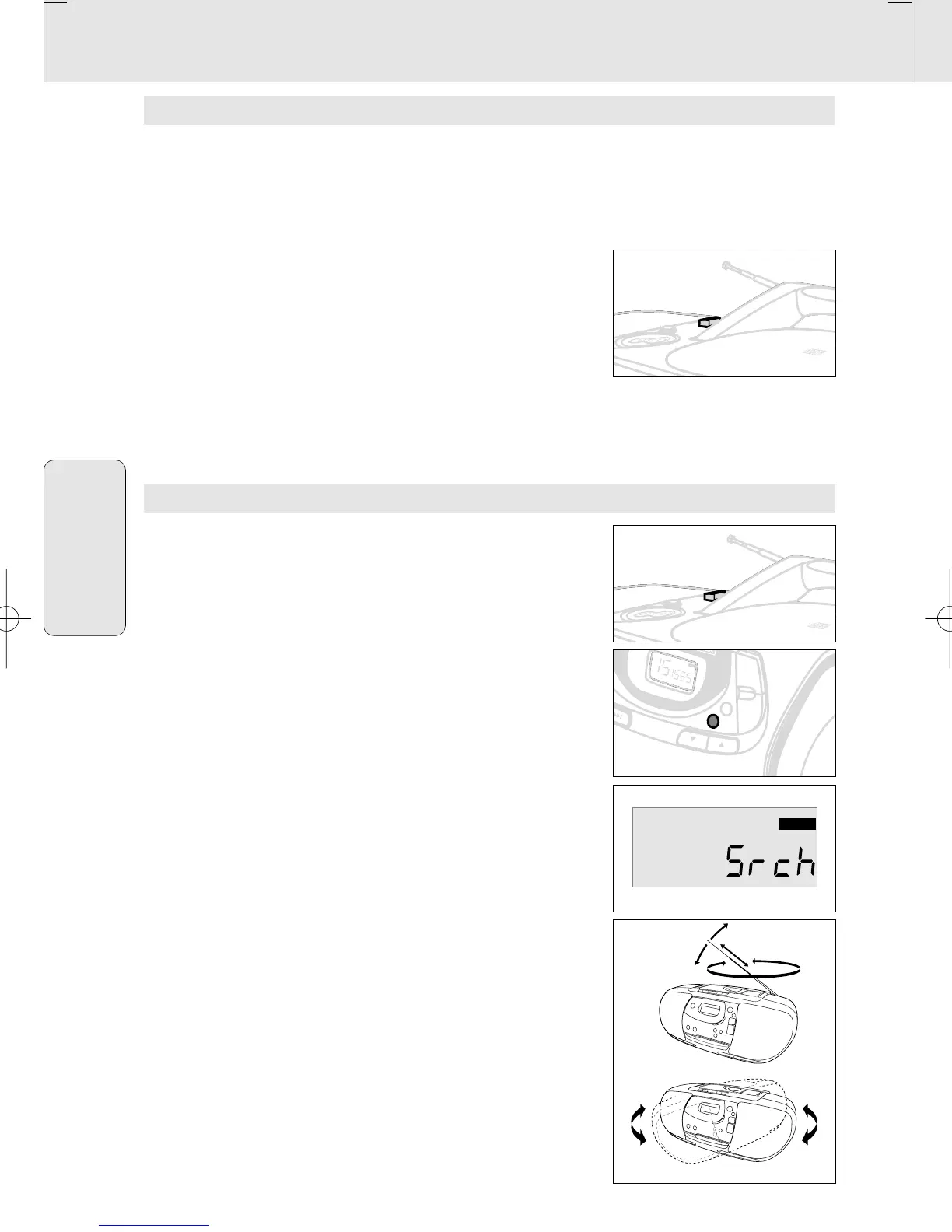 • Para FM, levante la antena. Incline y gire la antena. Bájela si