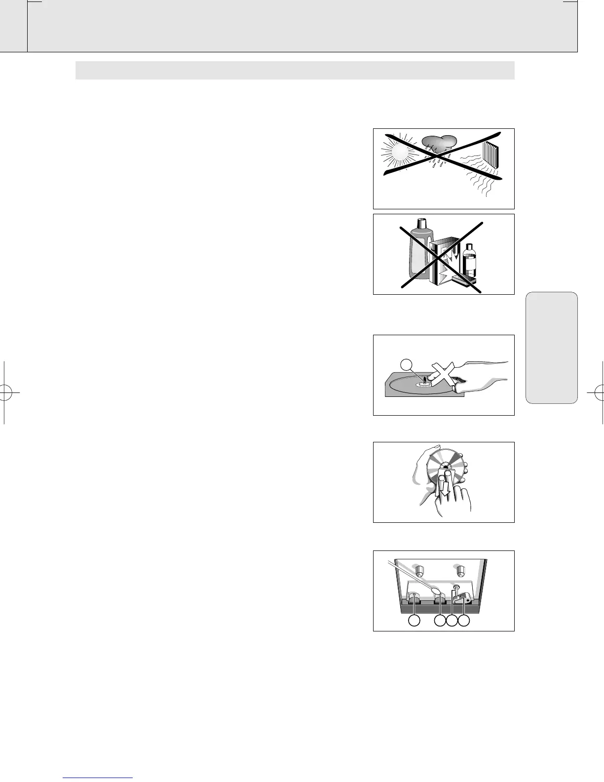 • Para limpiar los discos, utilice una bayeta suave y sin pelusa y