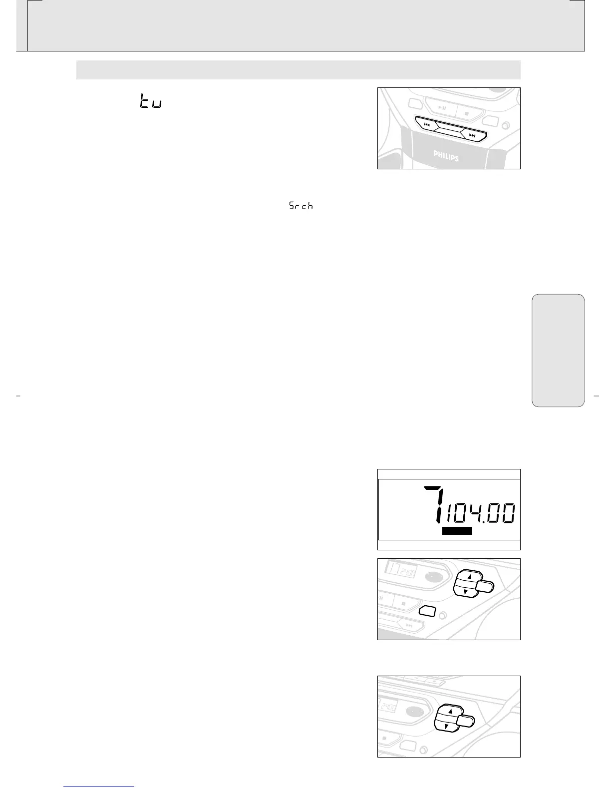 • Para sintonizar una emisora débil, pulse SEARCH ∞ o §