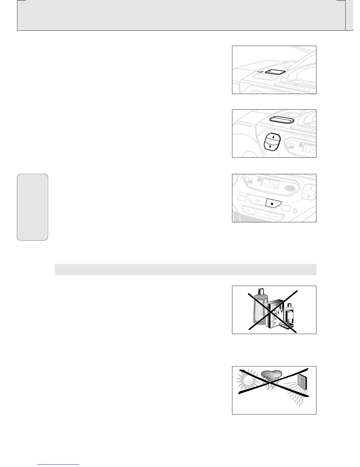 • No exponga el aparato, las pilas, los CD o las casetes a la
