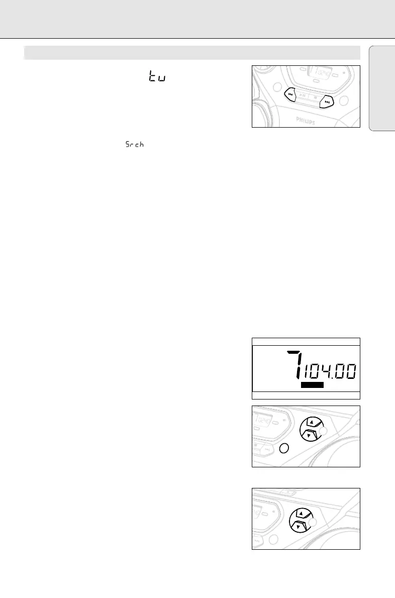 reception. Display shows during automatic tuning.