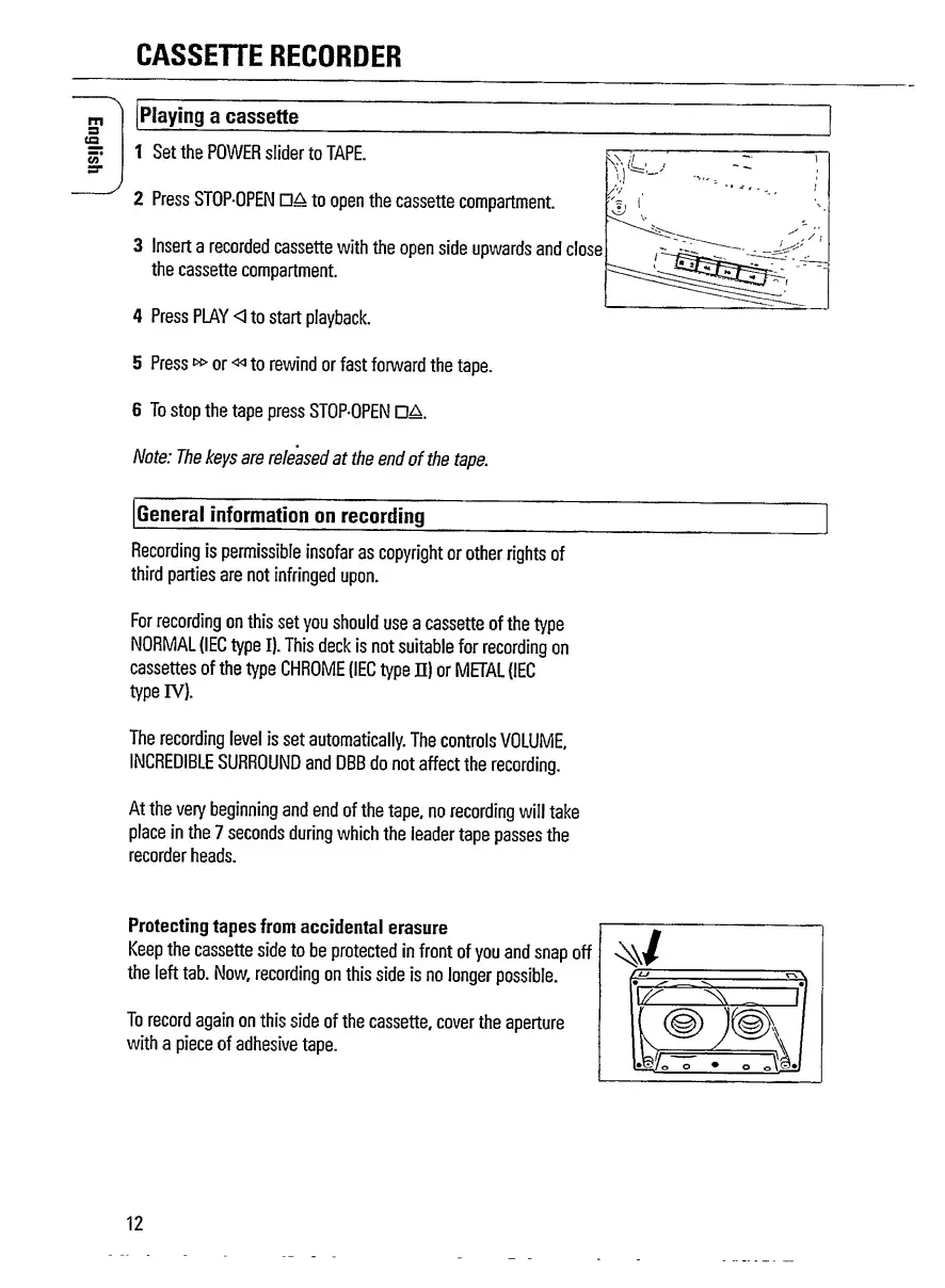 Philips AZ 1209 - Cassette Recorder Functions; Playing Cassettes
