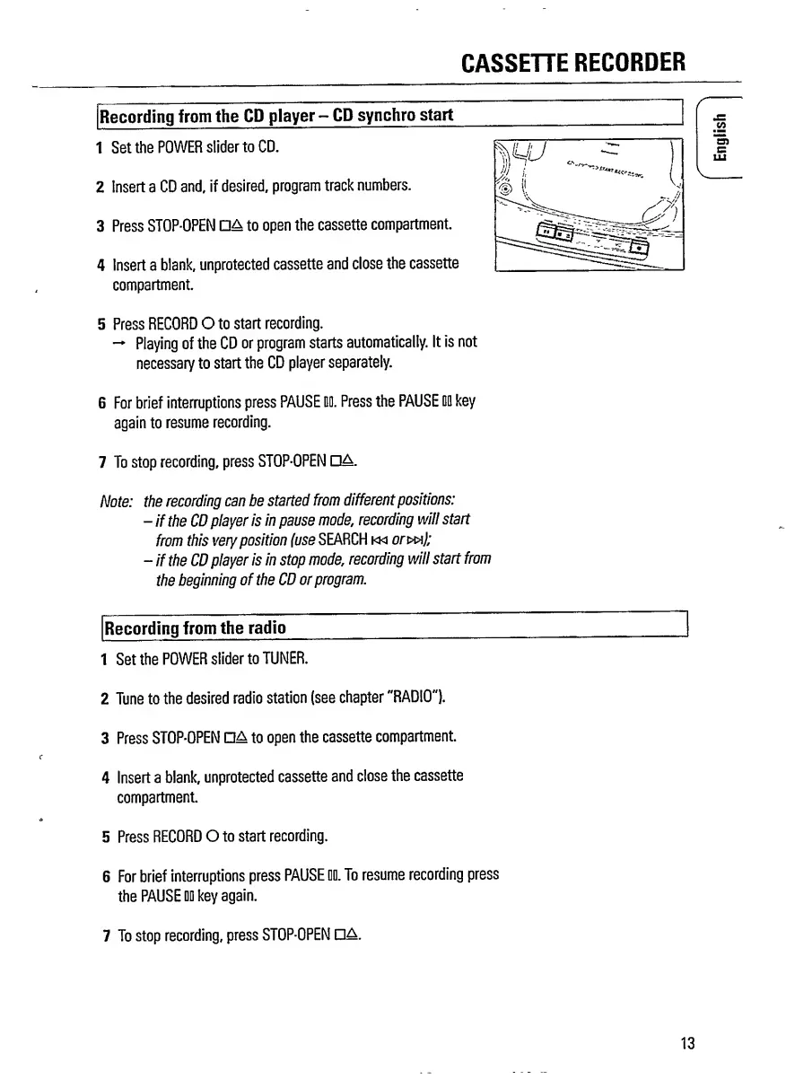 Philips AZ 1209 - CD to Cassette Recording; Radio to Cassette Recording