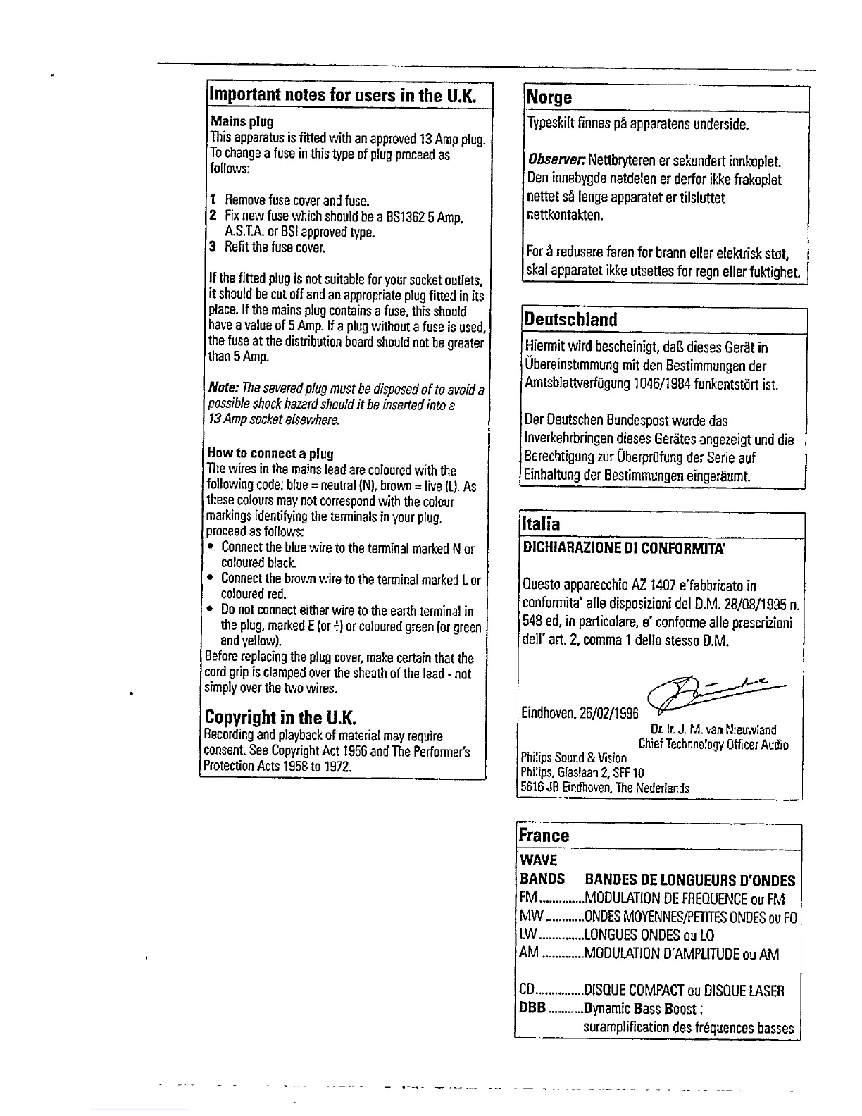 Philips AZ 1407 - Important Notes for Users in the U.K.; Mains Plug; How to Connect a Plug; Copyright in the U.K.