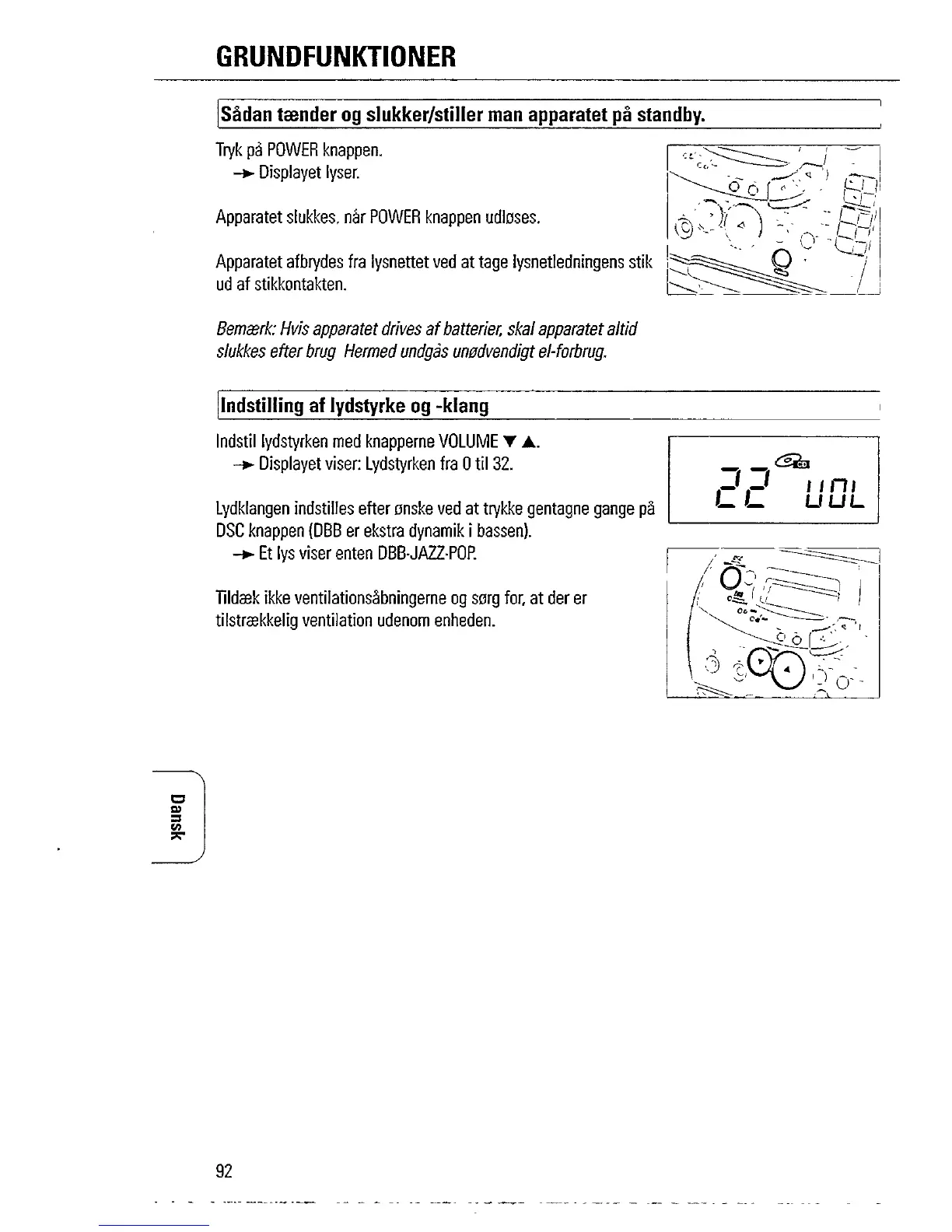 Philips AZ 1407 - Basic Functions; Turning On;Off and Standby; Setting Volume and Sound