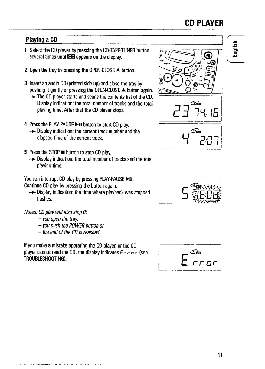 Philips AZ 1508 - CD Player Basic Playback; Playing CDs; CD Player Error Messages