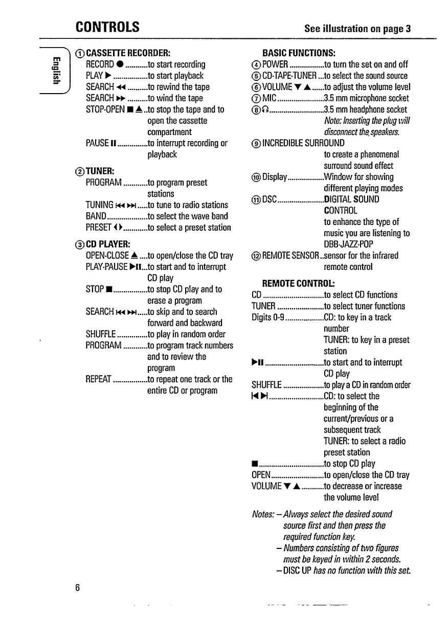 Philips AZ 1508 - Device Controls Overview; Cassette Recorder Controls; Tuner Controls; CD Player Controls