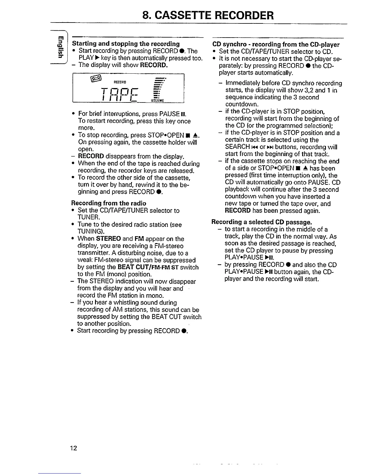 Philips AZ 2405 - Cassette Recorder Recording; Recording Sources