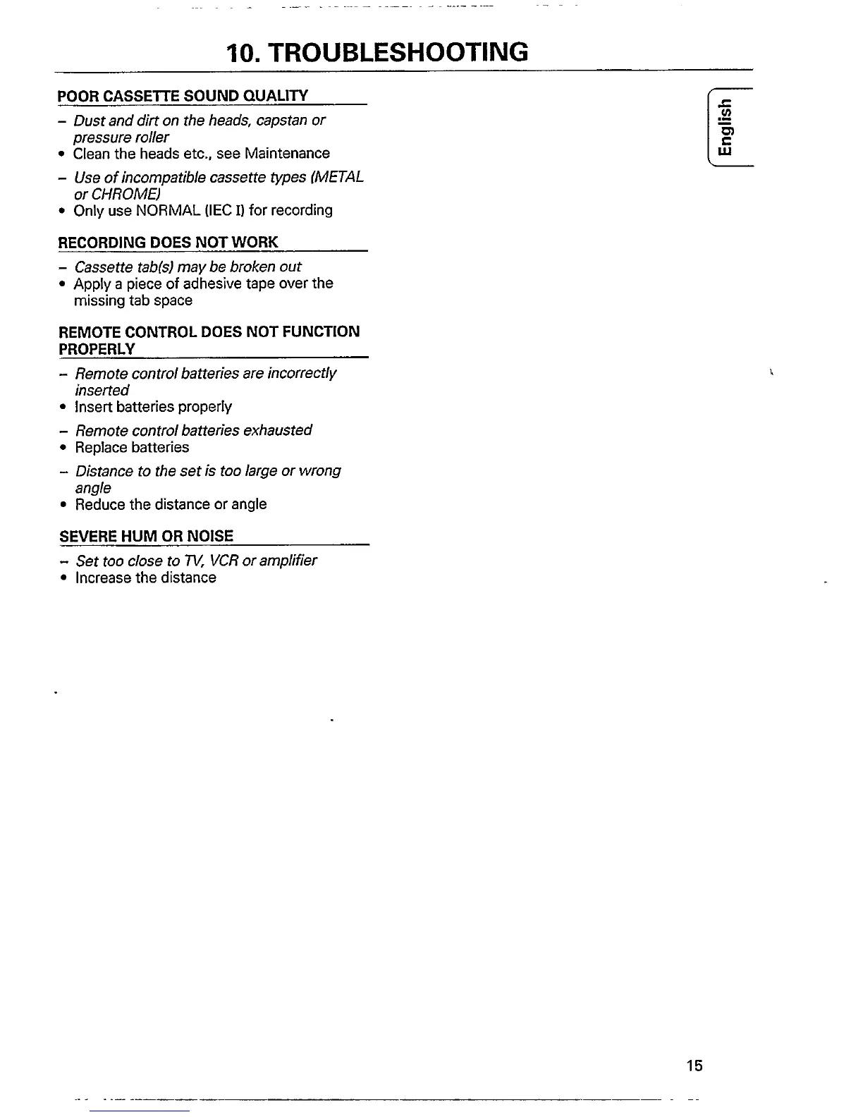 Philips AZ 2405 - Troubleshooting - Cassette and Remote Issues; Cassette and Remote Issues