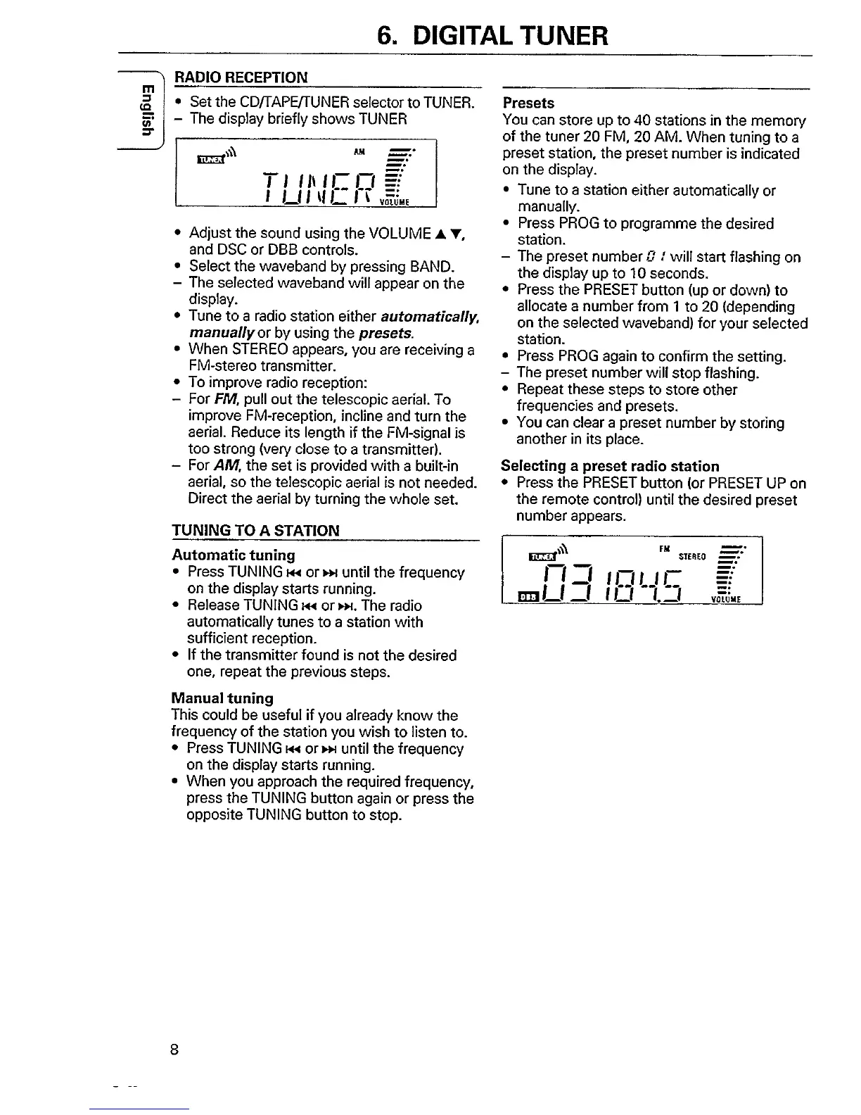 Philips AZ 2405 - Digital Tuner Operation; Radio Tuning and Presets