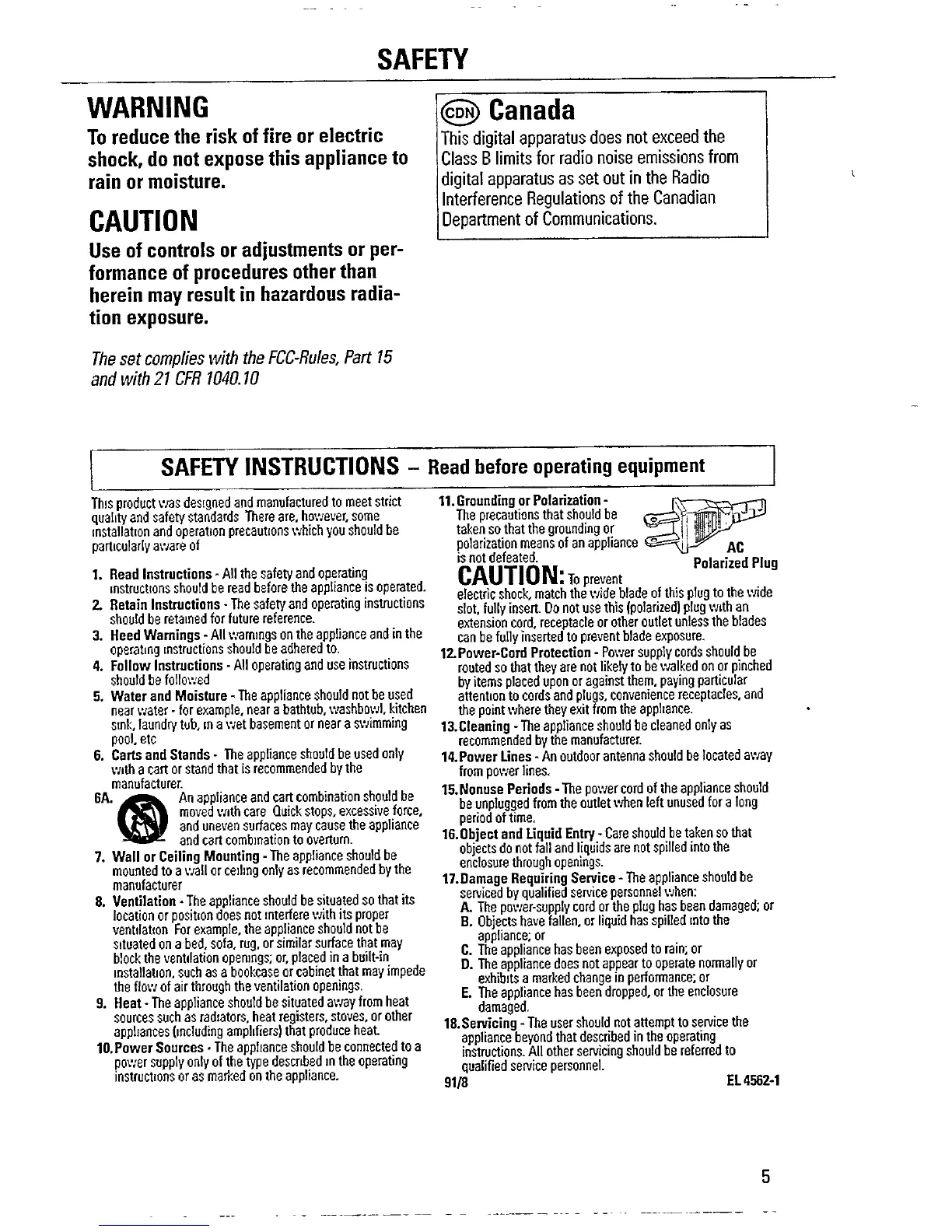 Philips AZ 2407 - Safety Instructions; General Safety Precautions; Operating Safety Guidelines