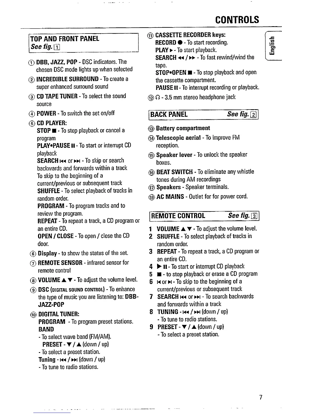 Philips AZ 2407 - Device Controls Overview; Top and Front Panel Controls; Remote Control Functions