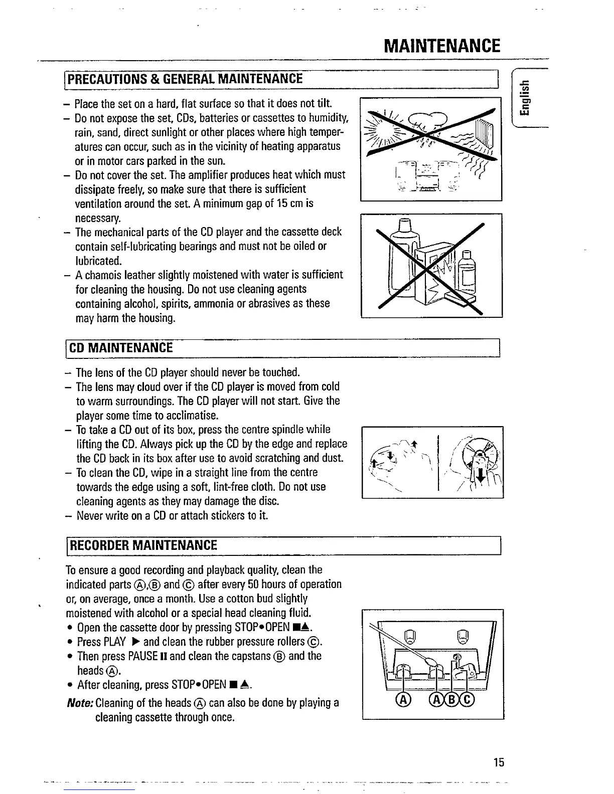 Philips AZ 2415 - Maintenance; Precautions & General Maintenance; CD Maintenance; Recorder Maintenance