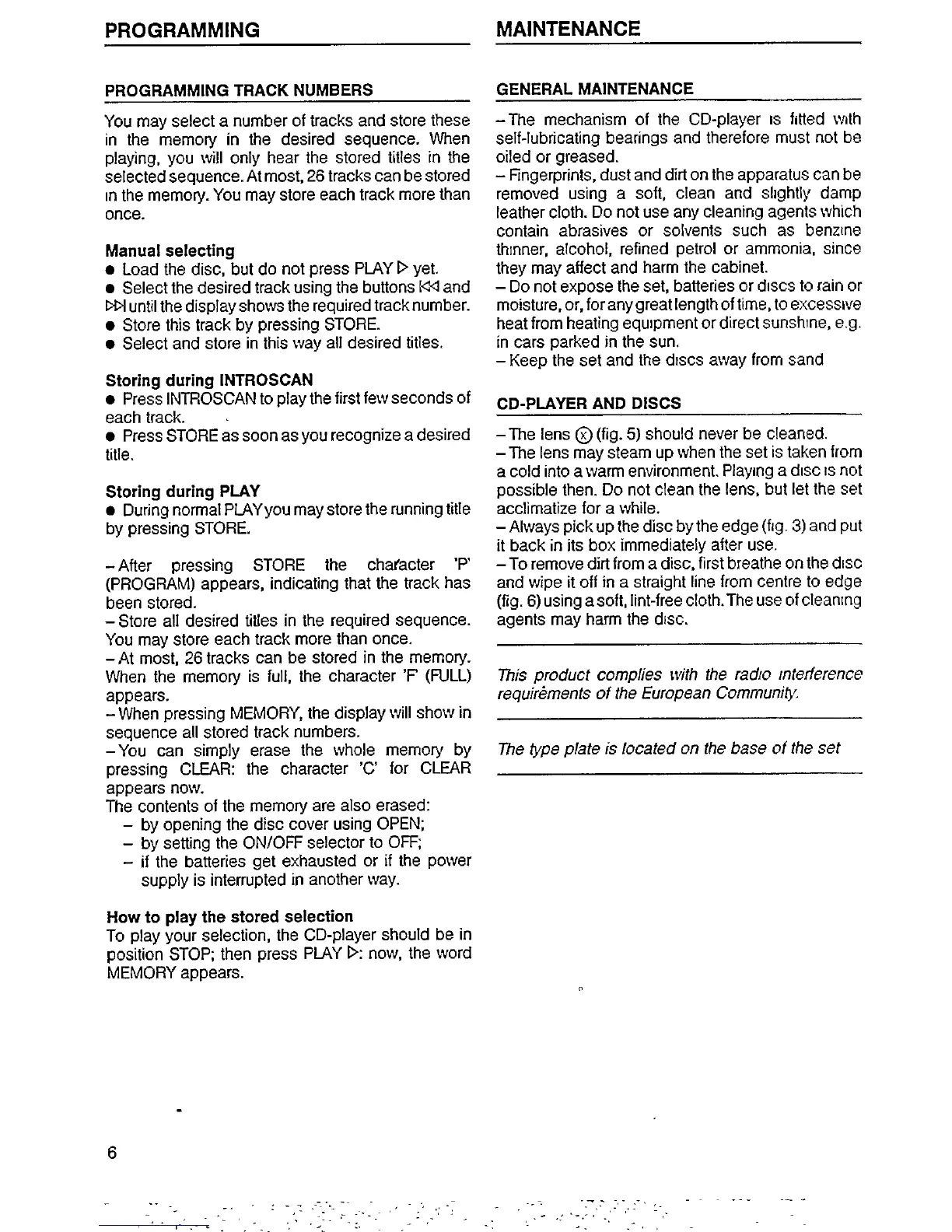 Philips AZ 6801 - Programming Track Sequences; General Maintenance and Care