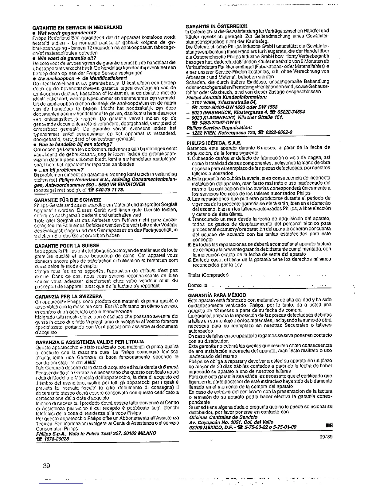 Philips AZ 6801 - Service and Guarantee for Other Regions