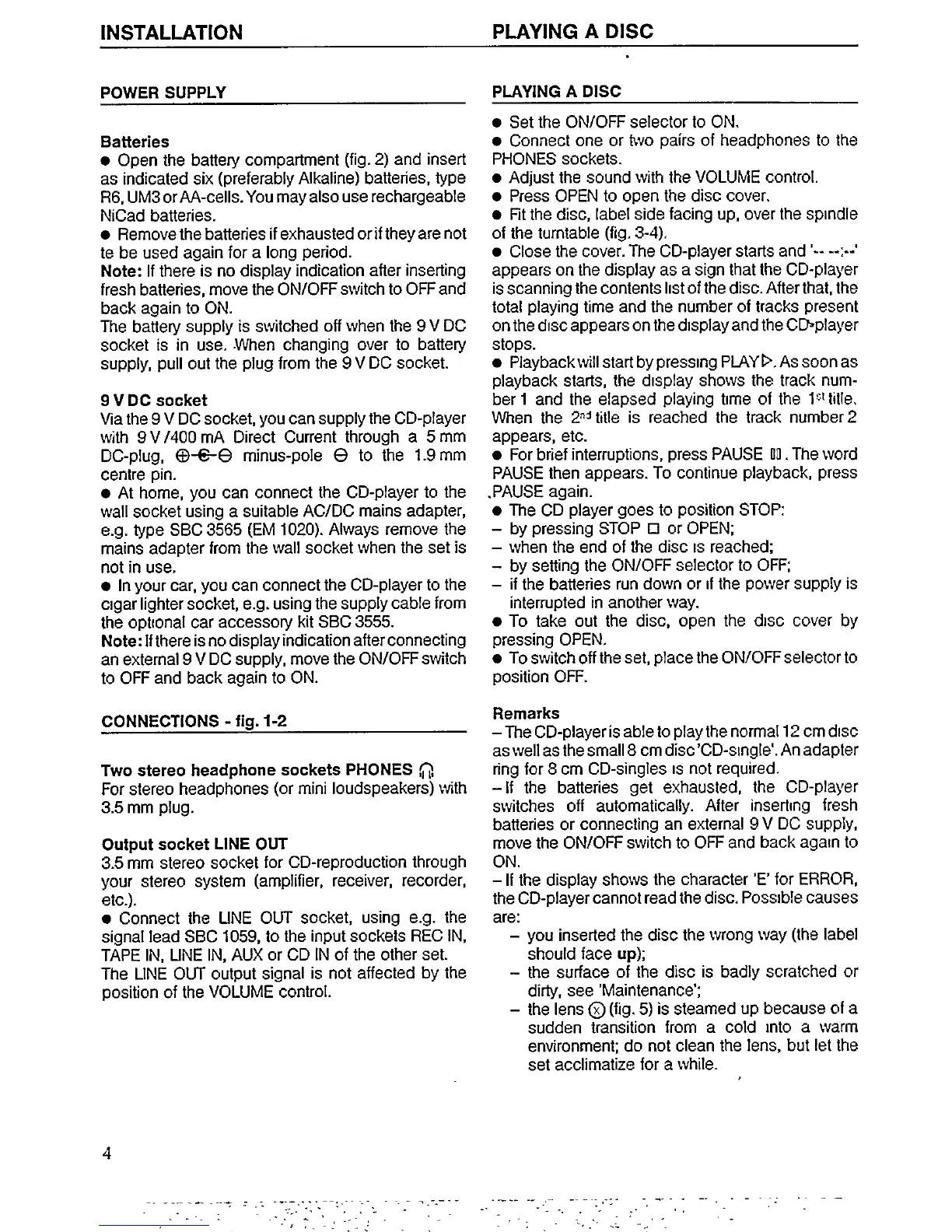 Philips AZ 6801 - Installation and Operation; Power Supply Options; Connecting Audio Outputs; Playing a Disc Guide