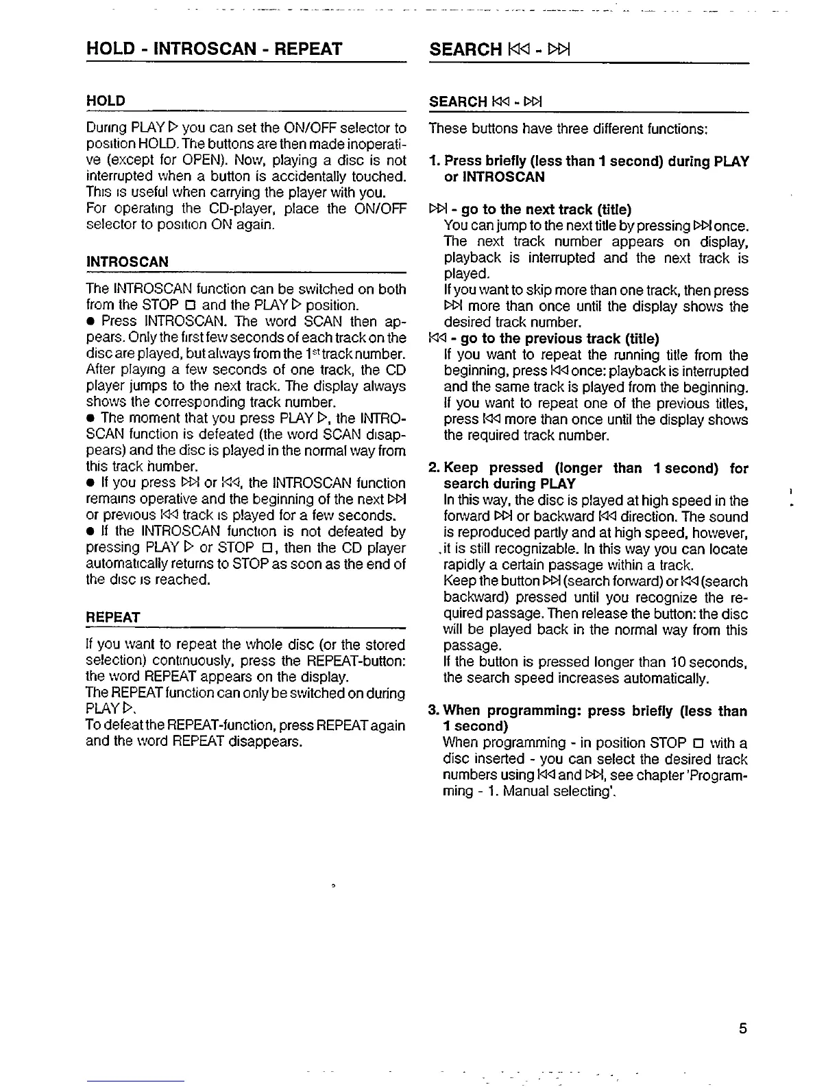 Philips AZ 6801 - Advanced Functions and Maintenance; Playback Hold and Search Functions; Introscan and Repeat Features